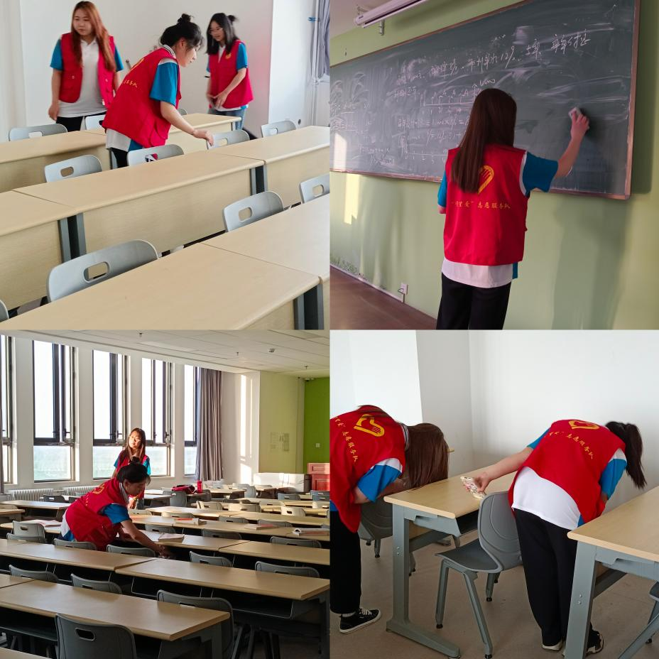 16:30下课后,2022-2023学年获得国家奖助学金的学生代表50余人身穿校服,配志愿者红马甲,带着清扫工具,在教学区各班教室内认真清理的小广告,在大同学们齐心协力的合作下,终将教室重现整齐优美的学习环境。清扫活动中的同学们精神饱满、热情洋溢,她们纷纷表示坚决杜绝小广告的不文明发放行为,并要定期肩负维护美丽经开校园的责任。