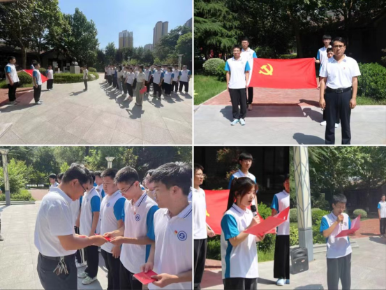 活动伊始,全体到场人员面对王达成校长雕像鞠躬致敬,奏唱国际歌。党总支书记刘军旭为新党员佩戴党徽、发放党章。随后,在学生第二党支部书记张旭带领下,所有党员面向鲜红的党旗,列队整齐,高举右拳,老党员重温入党誓词,新党员入党宣誓,用铮铮誓言彰显党员初心。两名新党员代表作了表态发言,表示将在今后的学习、生活中严格要求自己,不断提高党性修养,带头践行社会主义核心价值观,努力提高综合素质,以实际行动履行共产党员的职责和义务。