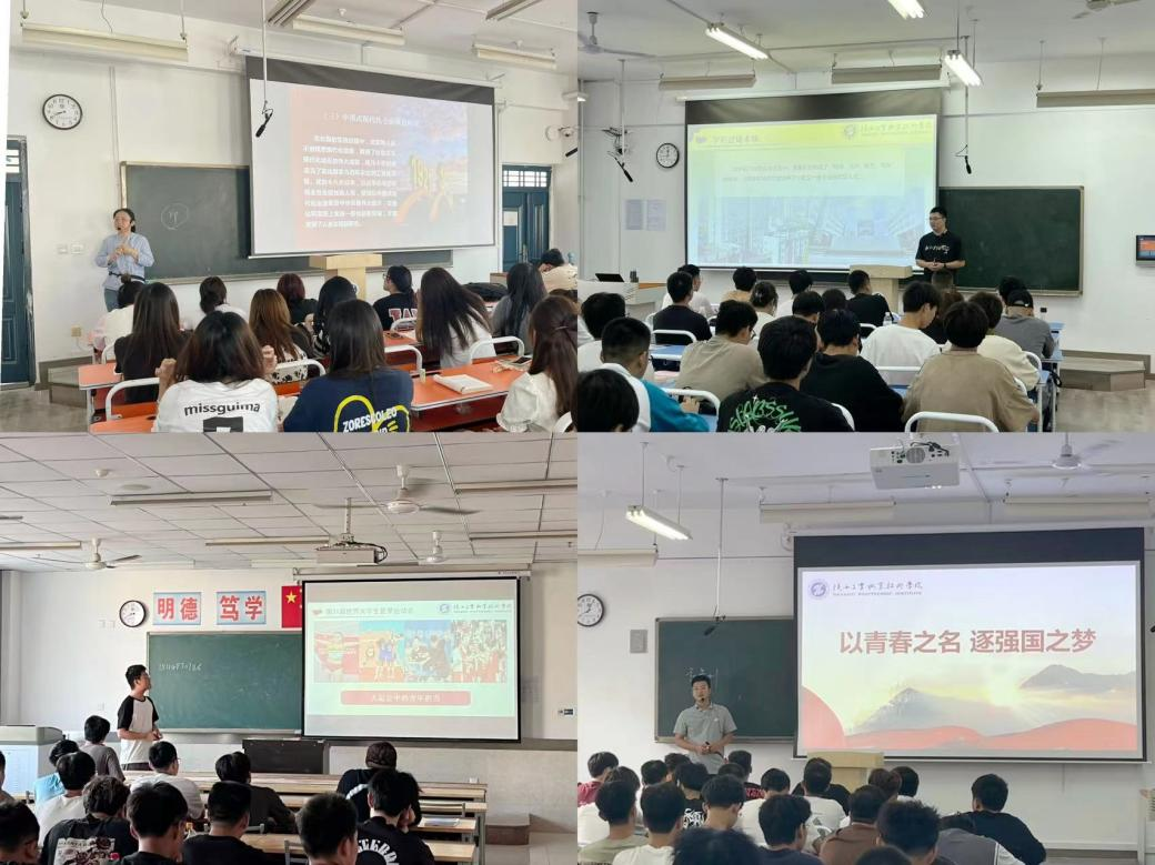 在马院教师暑假期间精心准备下马院以青春之名,逐强国之梦”为主题,紧扣时事、聚焦热点,分“勇于担当,擦亮新时代青春底色”敢于拼搏,绘就新时代最美画卷”“忠于使命,争做新时代优秀写手”三个模块,围绕新时代青年以青春助力中国式现代化的榜样事迹开展精彩授课,为同学们送上了一堂内容丰富、思想深邃的思政“开学第一课”,引导广大工院学子倾听时代脉动与个人际遇的共鸣,思考如何在逐梦中国式现代化中担起国之重托