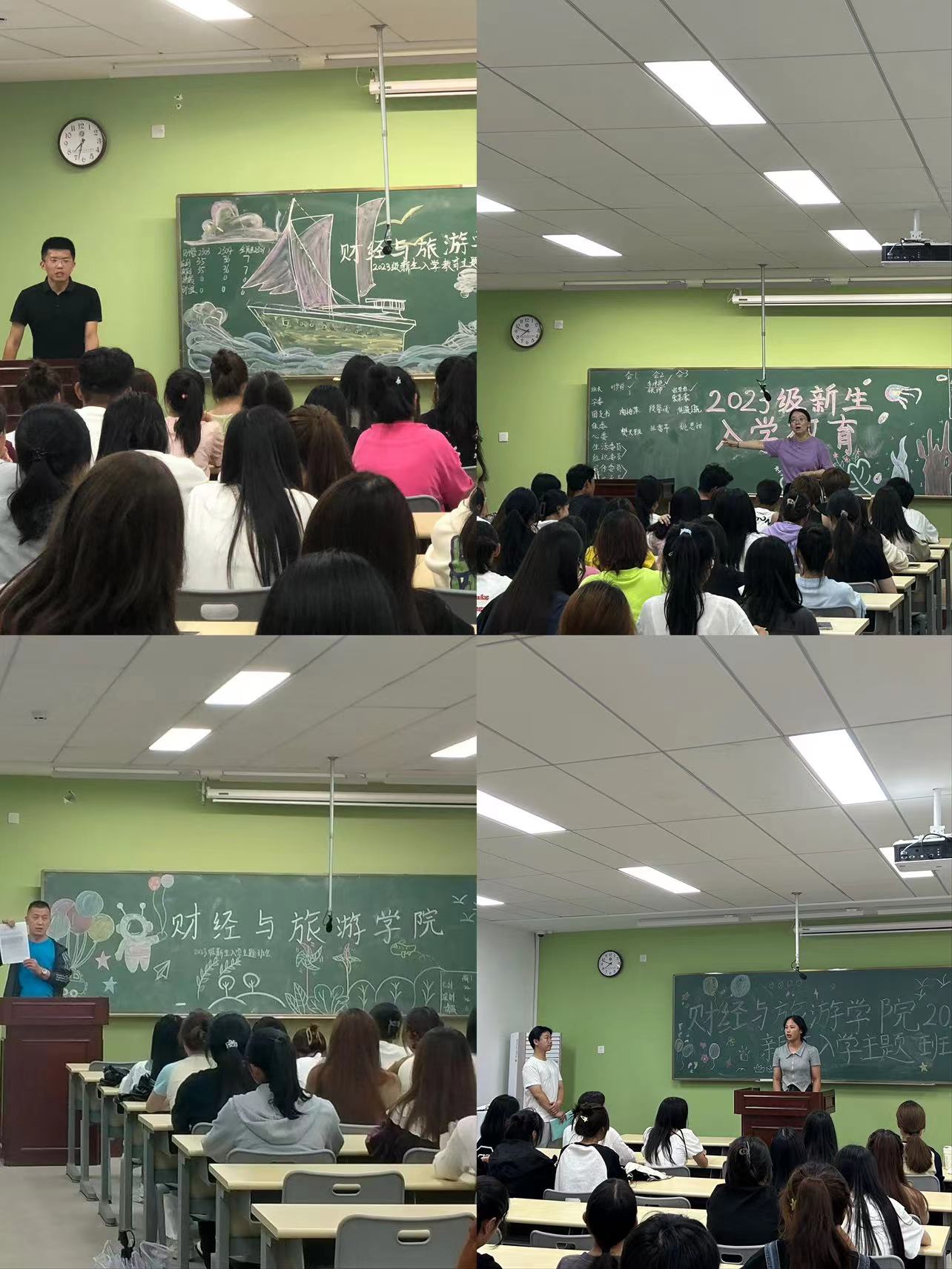新学期,新起点!为帮助2023级新生尽快适应大学生活和校园环境,完成角色转换,做好学业规划,财经与旅游学院于9月17日晚上开展2023级新生入学教育系列主题班会。班会由财经学院新生辅导员和各班班主任召开,2023级全体新生分班参与班会。