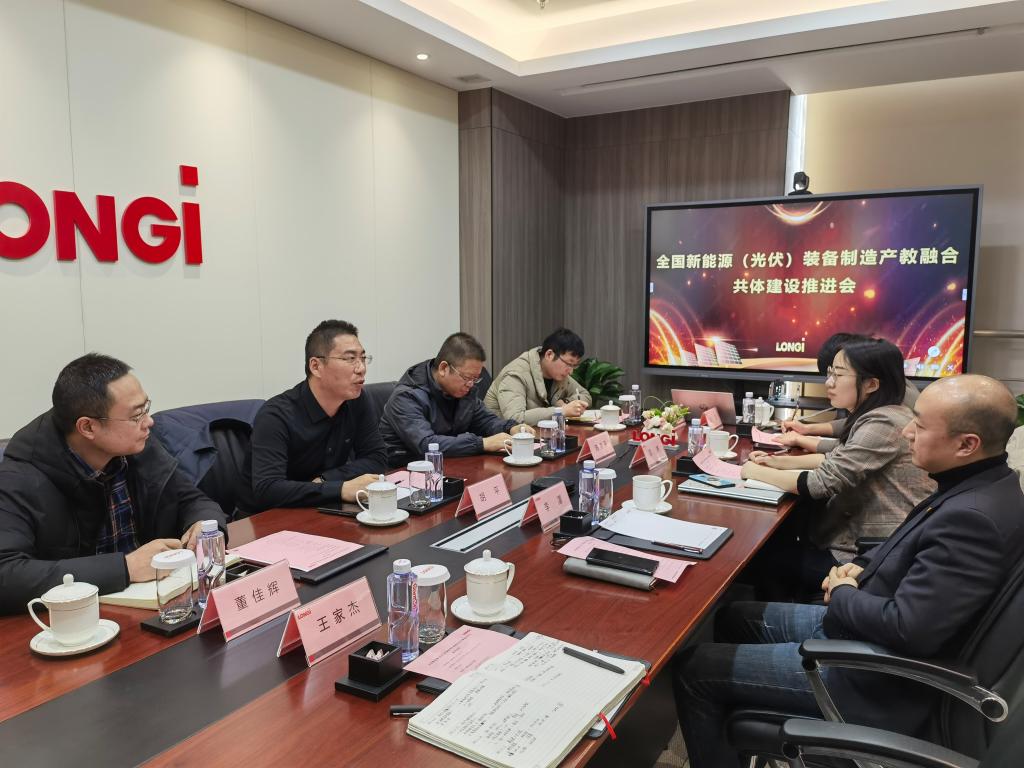 为推进全国新能源(光伏)装备制造产教融合共同体建设,11月30日下午,我校校企合作处副处长、校友办公室主任陈昊平、西部创新创业研究院院长胡平、电气工程学院副院长董佳辉、电气工程学院学工办主任赵松一行四人前往隆基总部参加全国新能源(光伏)装备制造产教融合共同体建设推进会,隆基绿能科技股份有限公司品牌规划总监李濛,校企合作高级经理郑婷,校企合作经理王家杰、王飞参加了会议,会议由郑婷高级经理主持。