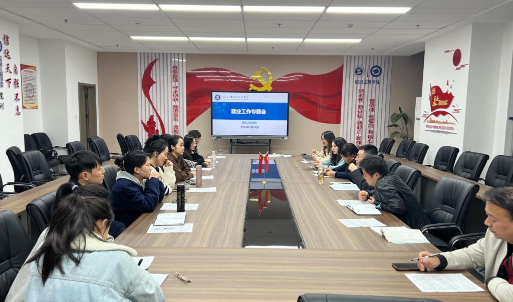 为进一步做好学生就业服务,促进2024届毕业生高质量就业,3月28日晚,信息学院于崇理楼C801召开就业工作专题会,信息学院党总支书王伟、副书记郭新玲以及全体2024届毕业班辅导员、班主任参加了会议,会议由党总支副书记郭新玲主持。