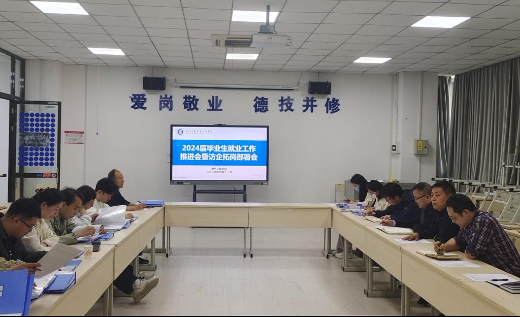 为进一步推进2024届毕业生就业工作,落实访企拓岗促就业专项行动,4月11日,电气学院党总支书记刘其兵、院长夏东盛、副院长董佳辉,全体辅导员、21级班主任在欧姆龙教室102召开就业专项会议,会议由电气学工办主任赵松主持。