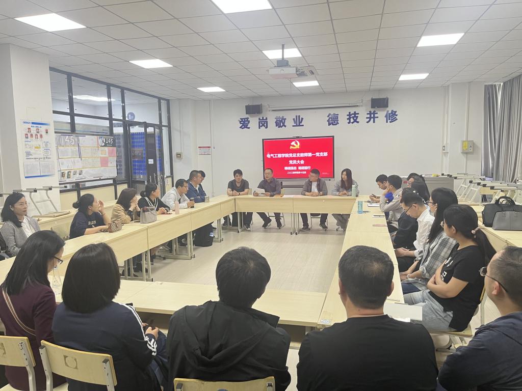 4月15日下午,电气工程学院教师第一党支部在行知楼A一楼欧姆龙教室开展“铸魂强志、砥砺前行”主题党日活动。会议由教师第一党支部书记董佳辉同志主持,教师第一党支部的全体党员教师参加了此次活动。