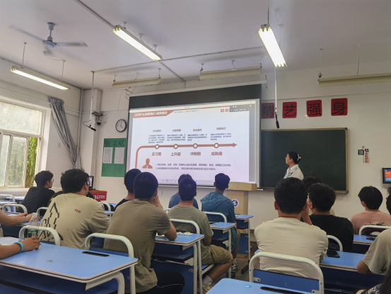 首先,订单班班主任王颖老师代表全体学生对海德曼公司周部长和施经理的参会表示了热烈欢迎。接下来,周元勋部长围绕企业相关运行机制,结合自己在海德曼的职业经历,以培养职业素养为中心,从就职心态调整、专业技能提升、个人发展规划等方面详细地说明了职业素养的重要性和职业能力提升的方法,他强调,理论学习是上岗实践的“垫脚石”,只有练就扎实的专业知识,才能成为卓越的技术能手。他勉励同学们要充分交流、取长补短、相互学习,在较短的时间内熟悉企业文化和岗位类型,尽快成长为适应岗位需求的技能人才。随后,施佳豪经理就同学们普遍关心的工作及生活问题进行了详细解答。