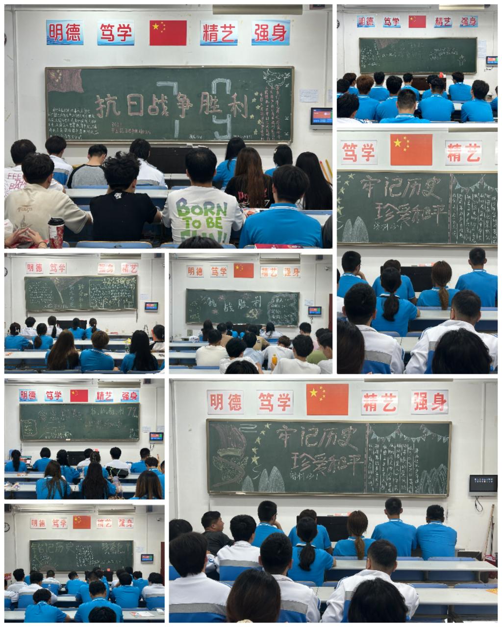 2024年9月3日是中国人民抗日战争胜利79周年纪念日,为深切缅怀革命先烈,弘扬爱国主义精神,培养学生铭记历史、珍爱和平的社会责任感和历史使命感。9月3日晚,材料工程学院团总支组织全体大二班级利用晚自习时间开展“勿忘历史 珍爱和平”主题教育班会。