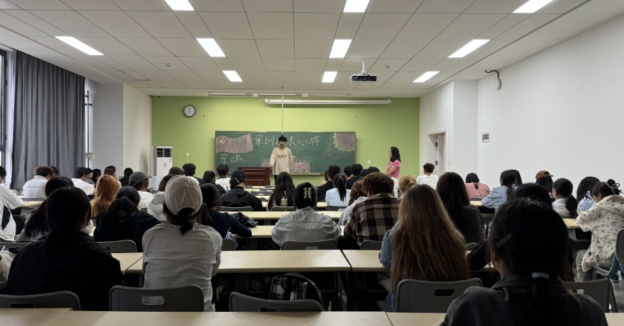 随后,班会进入核心环节——军训成长分享。几位学生代表依次上台,用真挚的情感和生动的语言,分享了他们在军训期间的点点滴滴。来自电商2402班的刘心雨学动情地说:“军训让我体会到了‘团结就是力量’的真谛,每一个队列动作的背后,都是大家无数次的默契配合与不懈努力。这段经历,让我更加珍惜集体中的每一份温暖。”分享过程中,还穿插了军训期间的精彩瞬间回顾视频,一幕幕汗水与欢笑交织的画面,让在场的每一个人都感同身受,仿佛又回到了那段激情燃烧的日子。