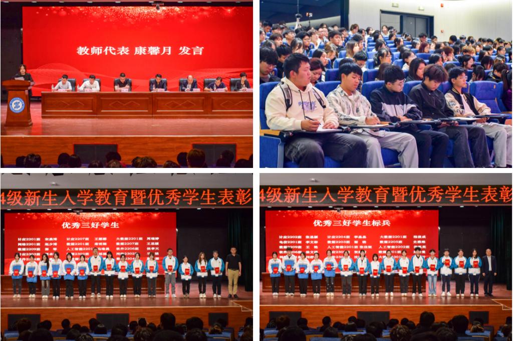 随后,康馨月老师作为优秀班主任代表进行发言,从“培养自学能力”“注重实践”“敢于尝试”“珍惜当下”四方面鼓励学生坚定理想信念,夯实专业基础,锤炼本领能力,收获青春梦想。国家奖学金获得者许淋皓同学分享了自己在校期间学习实践经历。新生代表计应2401班郭寒香同学号召全体同学做一个心中有梦,眼里有光的新时代青年,努力学习专业知识,提升综合技能,书写青春的新篇章。