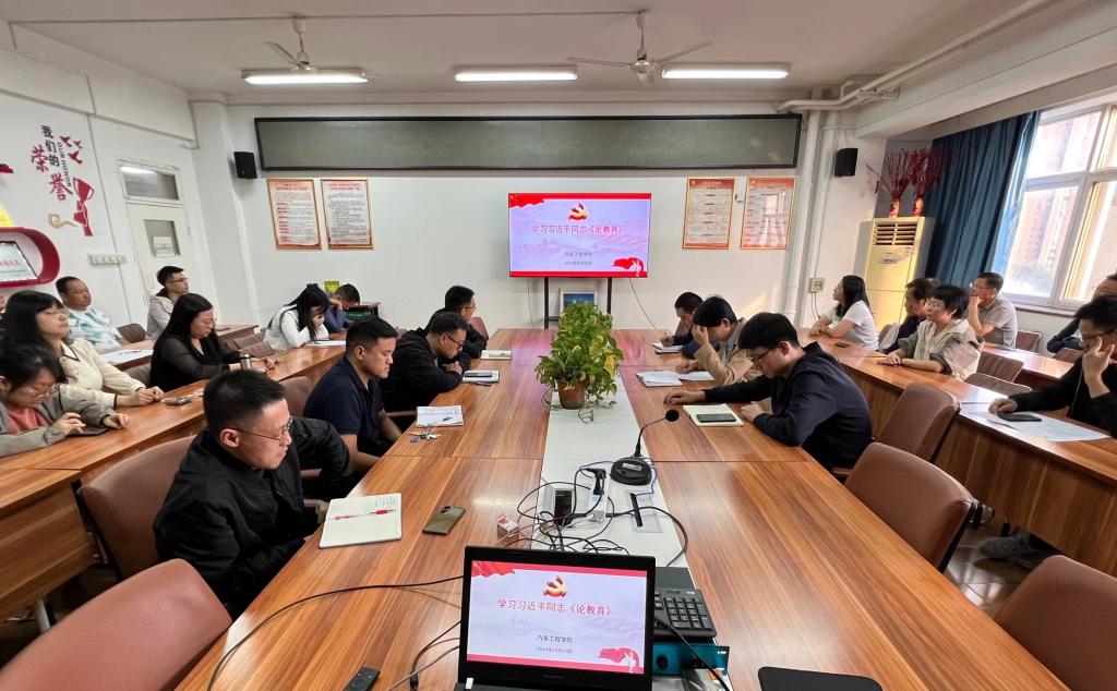 最后,汽车工程学院党总支书记高亚宁表示,《论教育》深刻阐明了新时代中国特色社会主义教育发展的方向、道路、方针、原则等根本性、战略性问题,是新时代教育强国建设的思想先导和行动指南。汽车工程学院要紧紧围绕“为谁培养人、培养什么人、怎样培养人”这个根本问题,投身职业教育,坚持把立德树人成效作为检验一切工作的根本标准,深入实施“双高计划”,做好人才引育工作,努力培养一流汽车人才,切实推动学院高质量发展。