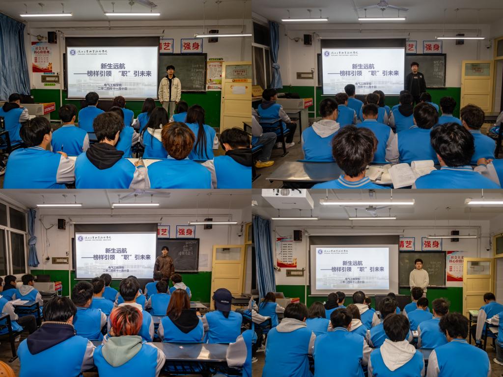为帮助大一新生更好适应大学生活、明确职业规划,11月10日晚,电气学院组织全体大一班级开展以“新生远航——榜样引领‘职’引未来”主题班会。此次班会旨在通过榜样引领,激发同学们的奋斗精神,为未来职业发展指明方向。