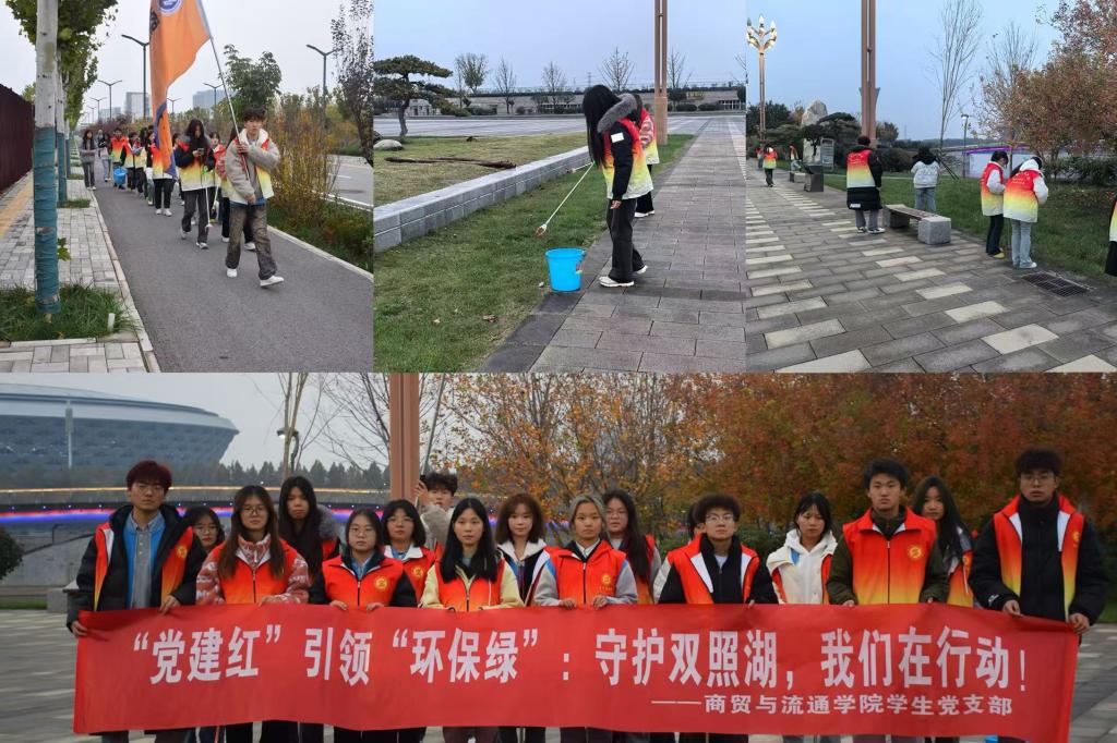 为深入贯彻习近平生态文明思想,将绿色发展理念融入主题党日活动,增强党员的环保意识和社会责任感,商贸学院学生第一党支部于11月19日下午组织支部党员、第十九期发展对象培训班成员前往双照湖公园开展“党建红”引领“环保绿”主题党日活动。