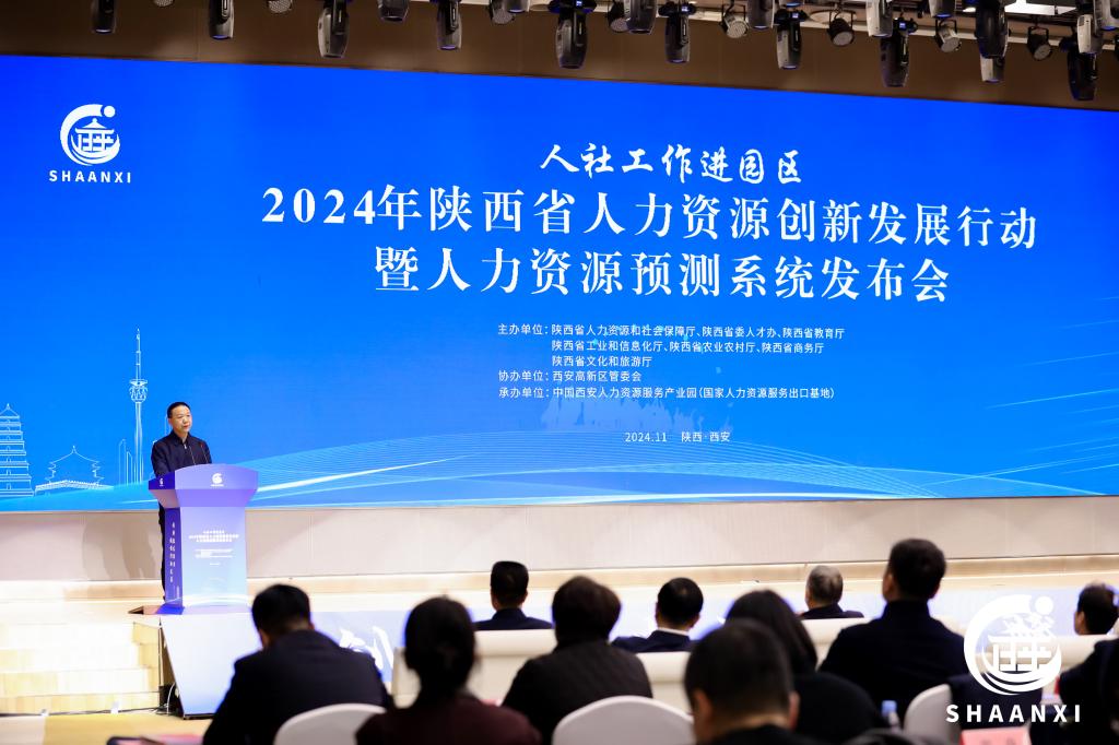 11月28日下午,陕西省人力资源创新发展行动暨人力资源预测系统发布会在高新区举行。活动旨在落实重点产业链急需紧缺人才目录成果转化应用,不断挖掘行业创新应用,提升服务水平质效,进一步推进人力资源行业高质量发展。陕西省人社厅党组书记、厅长蔡钊利,西安市人社局党组书记、局长廉宏伟,陕西省教育厅、工信厅、农业农村厅、商务厅、文旅厅相关负责人,高新区管委会副主任顾海文出席。各地市人社部门负责人、省内部分高校、链主企业及人力资源代表代表参加。