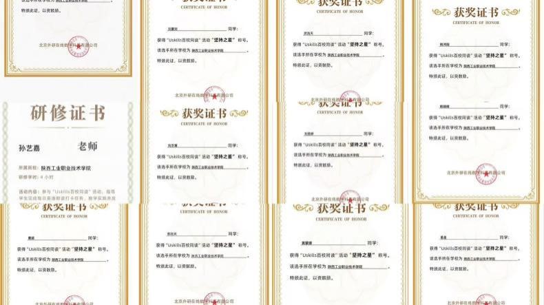 教师研修证书及学生获奖证书