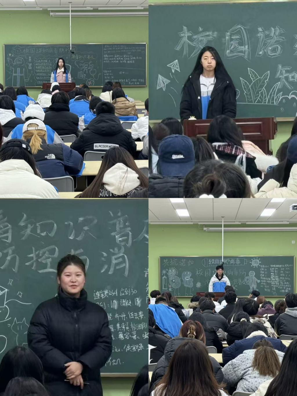 在班会中,各班干部向同学们全面讲解了诺如病毒的基本知识,包括病毒的特点、传播途径、症状表现及危害等内容。同时,还重点介绍了诺如病毒的防控措施,涵盖了科学洗手、环境消毒和个人卫生管理等方面,帮助学生掌握实践性强的健康技能。在此基础上,各班干部结合实际案例,分析了诺如病毒传播的典型情境与危害,强调了防控工作的重要性,进一步增强了学生的危机意识。