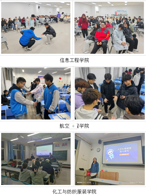 11月下旬,心理咨询中心组织了教师团体辅导技能培训,旨在增强教师队伍的心理辅导能力,为后续的班级心理辅导活动打下坚实基础。依托第一阶段培训成果,各二级学院积极响应,由班主任组织在班级内部开展了丰富多彩的团体辅导活动。这些活动形式多样,既有增强团队凝聚力主题的团体辅导,也有情绪管理和压力释放的团体辅导工作坊,有效帮助新生快速融入集体,提升自我认知与调节能力,为大学生健康生活和成长奠定了良好的心理基础。