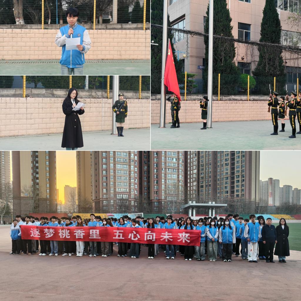 为增强心理育人成效,培育学生健康向上的心理素质,增强社会责任感和集体凝聚力,3月24日清晨,化工与纺织服装学院在渭城校区操场举行“筑梦桃香里,五心向未来”为主题的升国旗仪式。化工与纺织服装学院党总支书记杨修国、学工办主任曹淼、全体辅导员及2024级全体学生共计300余人参加了本次活动。
