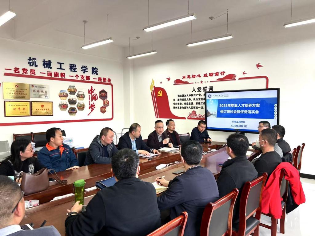 为做好2025级人才培养方案制定及修订工作,机械工程学院于3月21日在行知楼E410召开了2025年人才培养方案修订研讨会暨任务落实会,机械工程学院学术委员会全体人员、各专业负责人及机加工训练中心各班组长参加了此次会议,会议由机械工程学院教学办主任吴玉文主持。