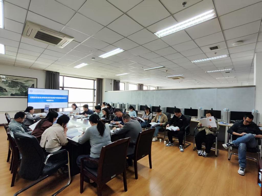 为深入贯彻落实党中央、国务院关于做好高校毕业生就业工作的决策部署,切实加强高校毕业生就业权益保护,4月8日下午,就业指导处在精艺楼二楼网络招聘室召开“毕业生求职权益保护案例”专题学习会。各二级学院学工办主任、教研小组联络员及就业指导处全体工作人员参会,会议由就业办公室主任张莹主持。