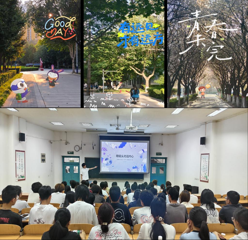 展览现场,百余幅优秀摄影作品有序播放,涵盖自然风光、人文纪实、抽象创意等多个类别。有的作品通过拍摄晨曦中破土而出的嫩芽,展现对生命希望的憧憬;有的聚焦于城市街头陌生人温暖的微笑,传递人与人之间的善意与关怀;还有的通过独特的光影变幻,将复杂心绪化为视觉语言。每一幅作品都承载着创作者独特的心境,在欣赏作品的同时,也能从中找到情感共鸣,获得心灵慰藉。随后,优秀作品创作者分享作品背后的故事与创作心路,不仅让同学们更深入理解作品内涵,也在交流中互相支持、彼此鼓励,营造出温暖积极的心理氛围。
