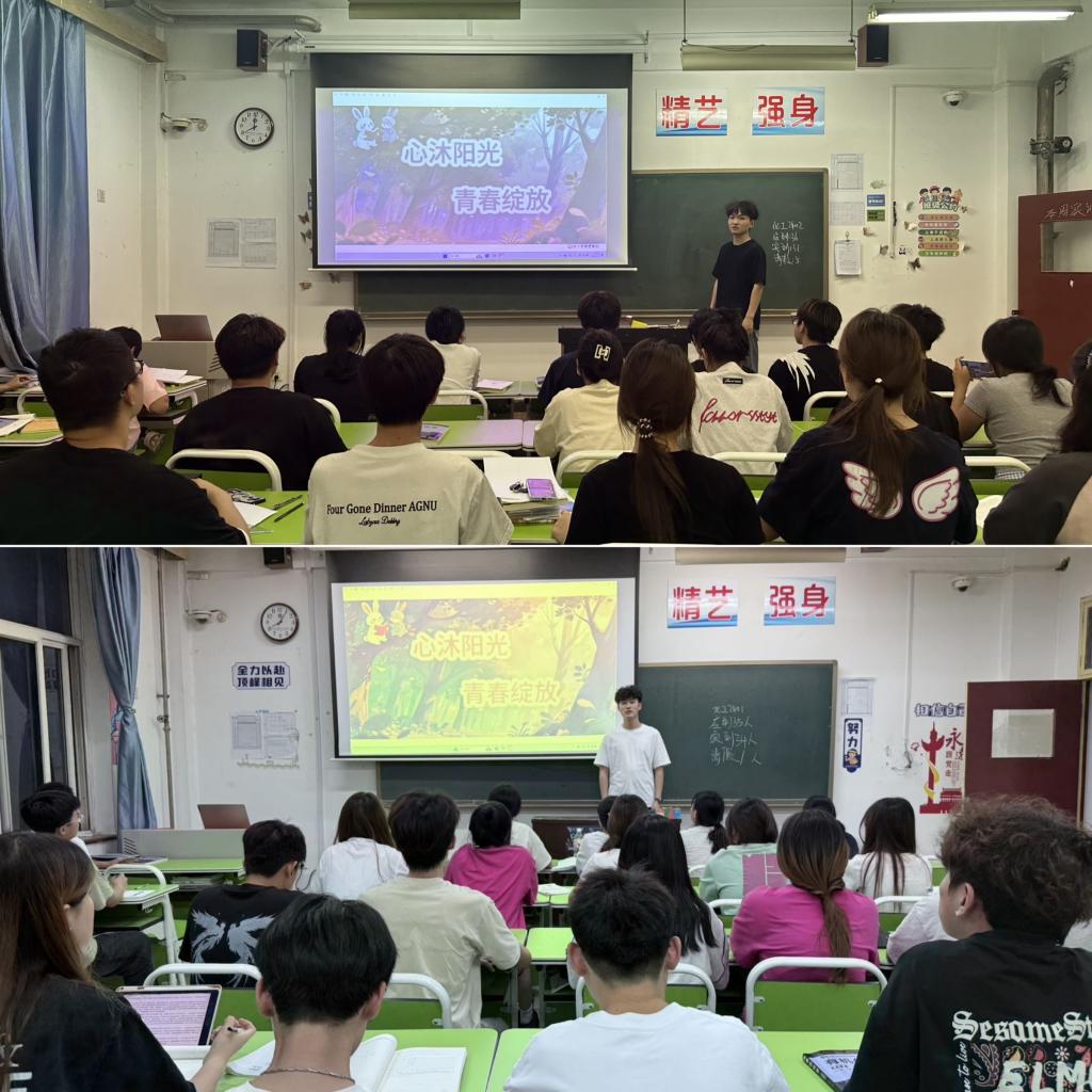 为深入贯彻落实大学生心理健康教育,化工与纺织服装学院阳光心晴工作站于5月14日晚,开展“心沐阳光 青春绽放”主题班会。本次活动旨在通过班会形式引导学生关注心理健康,提升学生心理调适能力,营造积极向上的校园文化氛围。