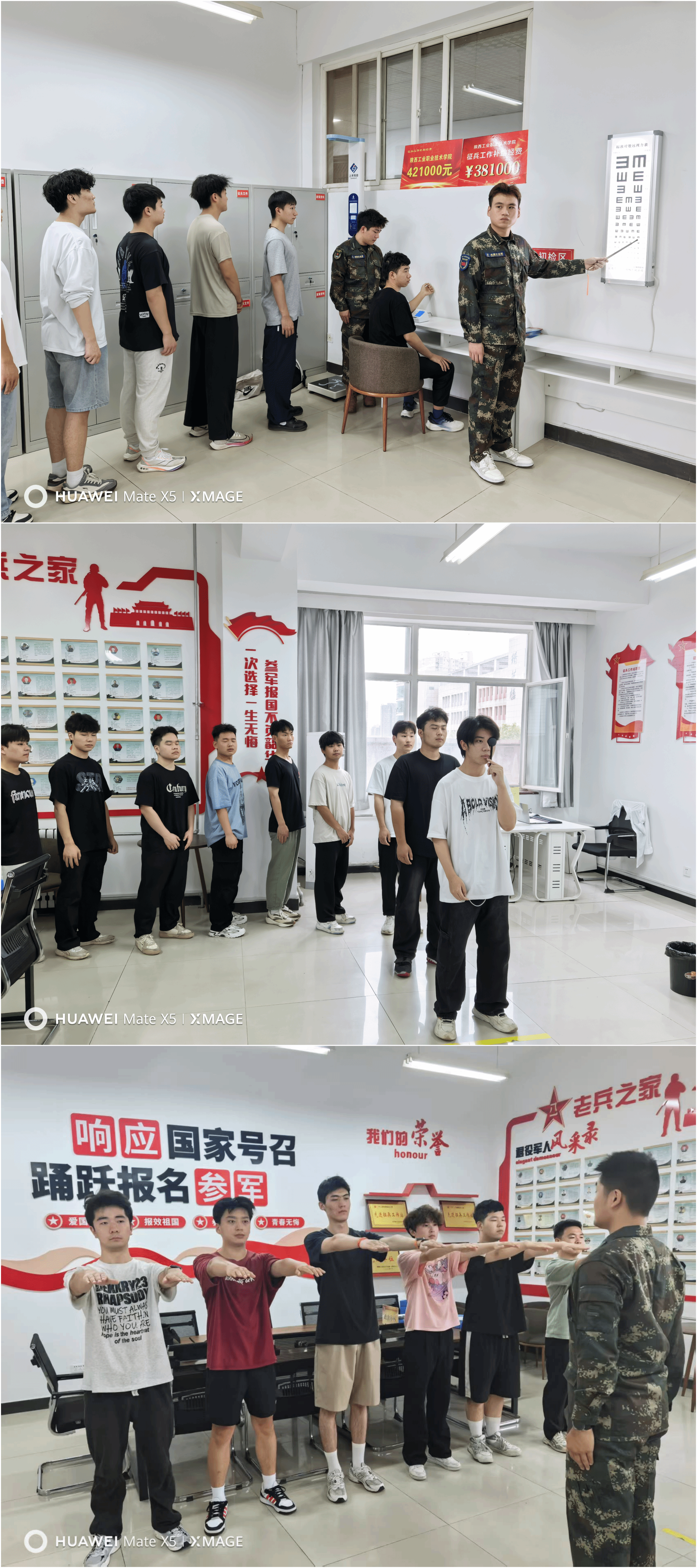 本次征兵工作开展以来,我校按照早筹划、早准备、早部署、早落实的原则,加大宣传力度,充分调动我校学子参军入伍的积极性和主动性。此次初检初审合格的预征对象由校征兵工作站确定为送检对象,将在2025年8月中旬由渭城区征兵办统一组织实施正式体检。