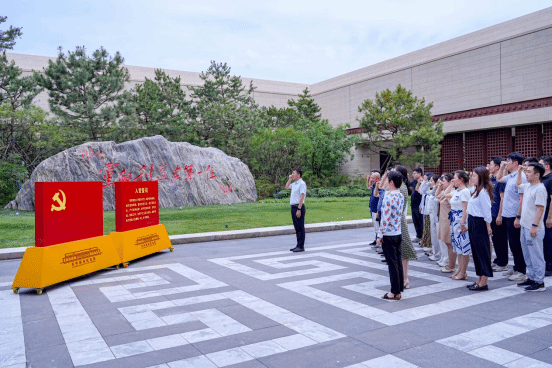 随后,在讲解员的引导下,党员同志们对关中革命纪念馆“星火初燃”“抗日烽火”“解放风云”等展厅进行了参观,深入了解习仲勋等老一辈无产阶级革命家为民族独立和人民解放事业所建立的丰功伟绩。那泛黄的手稿、斑驳的军号、复原的战斗场景,生动再现了关中地区波澜壮阔的革命历程。面对珍贵的历史文物与影像资料,大家不时驻足凝视、低声交流,深刻感悟习仲勋等革命先辈在艰苦环境中坚守信仰的力量。参观结束时,全体党员在毛泽东同志题写的“党的利益高于一切”石碑前,面向党旗重温了入党誓词,那铿锵有力的誓言回荡在纪念馆上空,字字句句彰显着对党的无限忠诚与坚定决心。