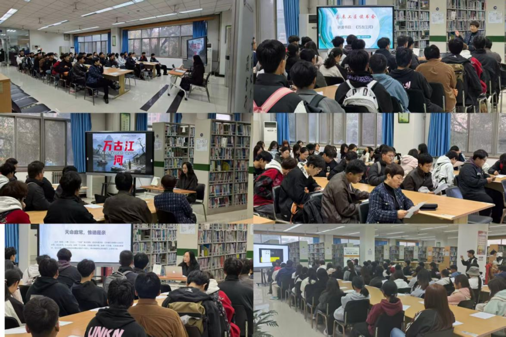 10 月 24 日下午,渭城校区图书馆二层南书库书香满溢,未来工匠读书会如期启幕。本次活动由图书馆副馆长王艳老师主持,图书馆王璐老师以许倬云先生的经典著作《万古江河》为核心,带领在场同学共同开启了一场跨越千年的历史文化之旅。