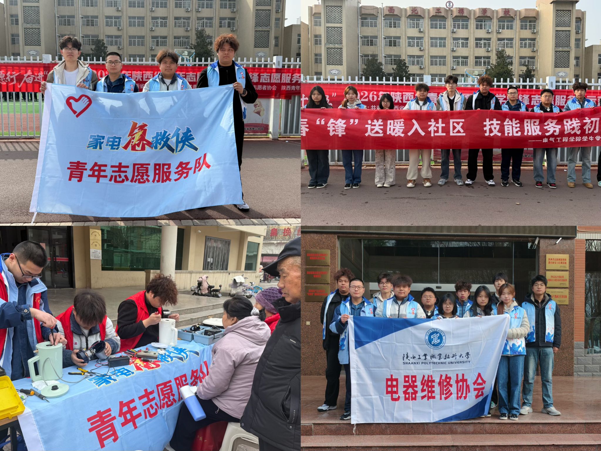 电气工程学院“家电急救侠”青年志愿服务队、人工智能学院“青春伴夕阳 智能不迷茫”智慧助老服务队、航空工程学院禁毒防艾志愿者服务队,组织上百名青年志愿者赴秦都区西北二棉社区参加省级示范活动。志愿者们立足专业所长,精准对接社区居民需求,为居民提供家电义务维修、安全用电科普等便民服务,耐心助力老年人跨越“数字鸿沟”,细致普及智能手机操作、防诈骗等实用知识,同步开展禁毒防艾主题宣传,用专业技能破解群众急难愁盼,以暖心举措传递志愿温度,获得社区居民一致好评与认可。