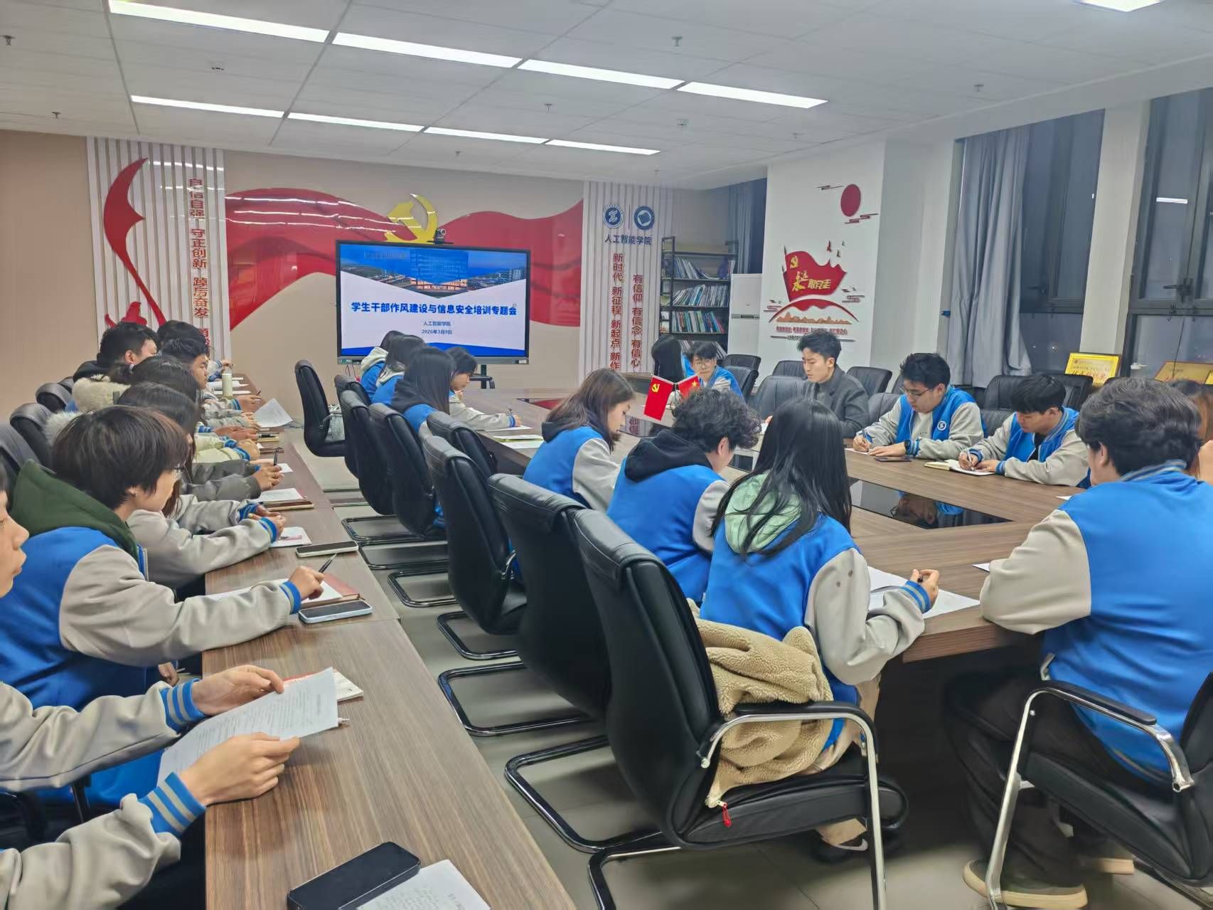 为深入贯彻落实新学期学生工作部署,进一步加强学生干部队伍建设。3月9日,人工智能学院在崇理C801召开新学期学生干部作风建设暨信息安全培训专题会。会议由学生会指导教师王涛主持,学院全体学生会干部参会。