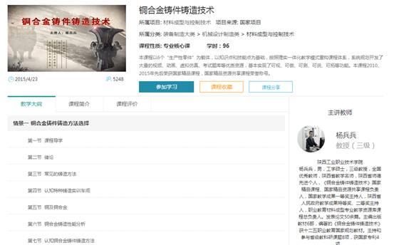 7.省级精品在线开放课程——铜合金铸件铸造技术
