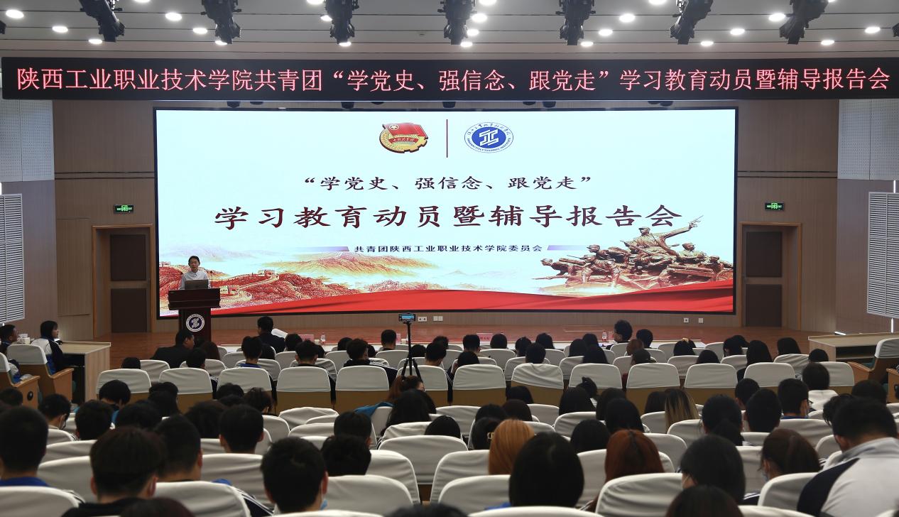 为深入学习贯彻落实习近平总书记关于学习党史的重要讲话和指示精神,及《共青团中央关于在全团开展“学党史、强信念、跟党走”学习教育的通知》精神,根据我校党委安排部署,3月26日下午,我校共青团“学党史、强信念、跟党走”学习教育动员暨辅导报告会在学术会堂举行。党委副书记贺天柱出席会议,学工部部长郝军、团委书记赵双军、团委全体成员、各二级学院团总支书记、教师团干部、学生团干部以及学生代表共计三百余人参加了会议。会议特邀咸阳市委党校中共党史教研室主任叶明亮教授参会并作报告。大会由团委副书记薛媚主持。