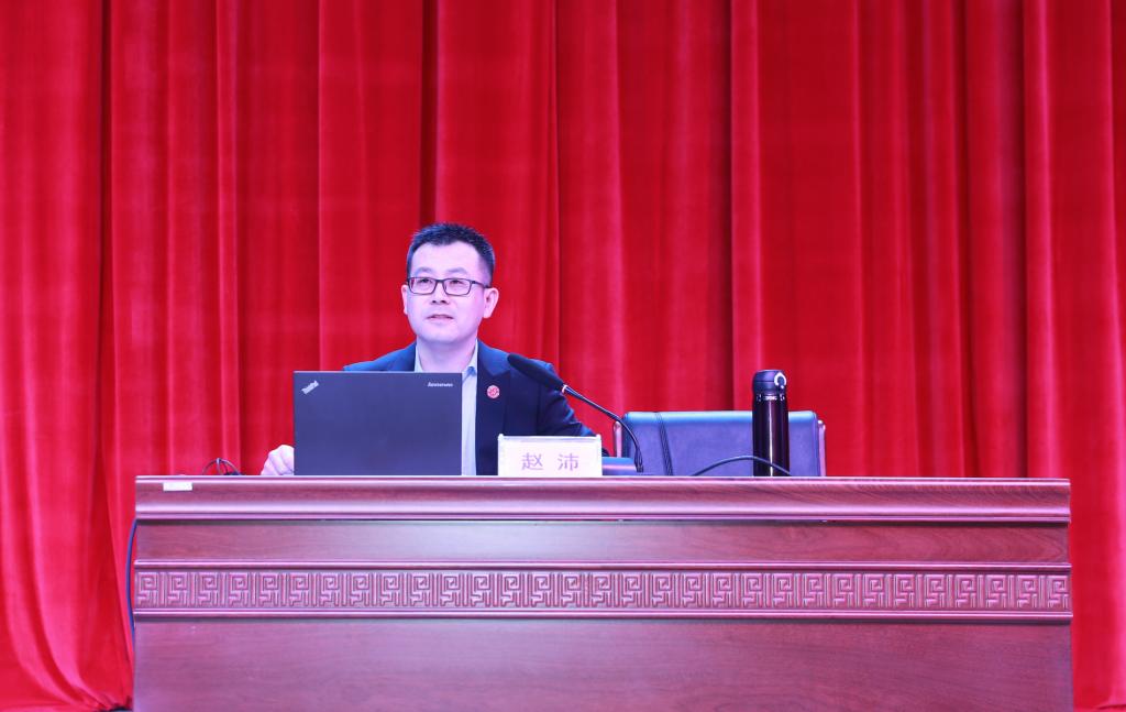 4月7日下午,我院举办党史学习教育专题报告会,西北大学马克思主义学院赵沛副教授应邀为我院师生作了题为《何以得天下,何以安天下——探究中国共产党百年历程的成功之道》的专题报告。报告会在明德礼堂召开,党委副书记田昊主持,全院副科级以上干部,教师党员代表,学生党员、入党积极分子,学生代表等400多人聆听了报告。