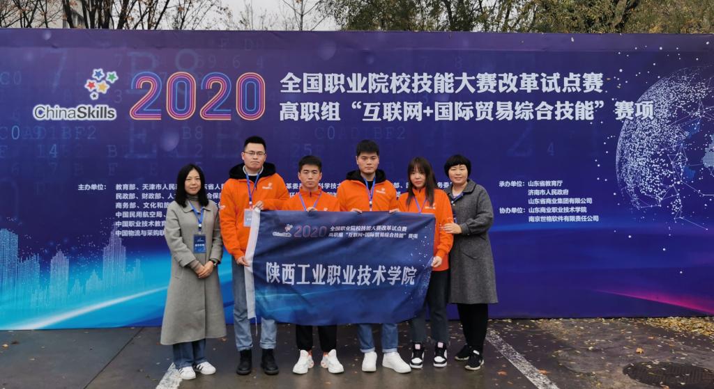 11月17日-18日,2020年全国职业院校技能大赛改革试点赛高职组“互联网+国际贸易综合技能”赛项在山东商业职业技术学院举行,来自全国29个省市自治区的29支代表队参加本次比赛,我院商贸与流通学院王粉萍、王霄两位老师指导的杨帆、徐哲、谢鹏德和冉晨玮四位同学组成的代表队代表陕西省参赛。经过两天的激烈角逐,最终以总分第四名的成绩荣获国赛团体二等奖。