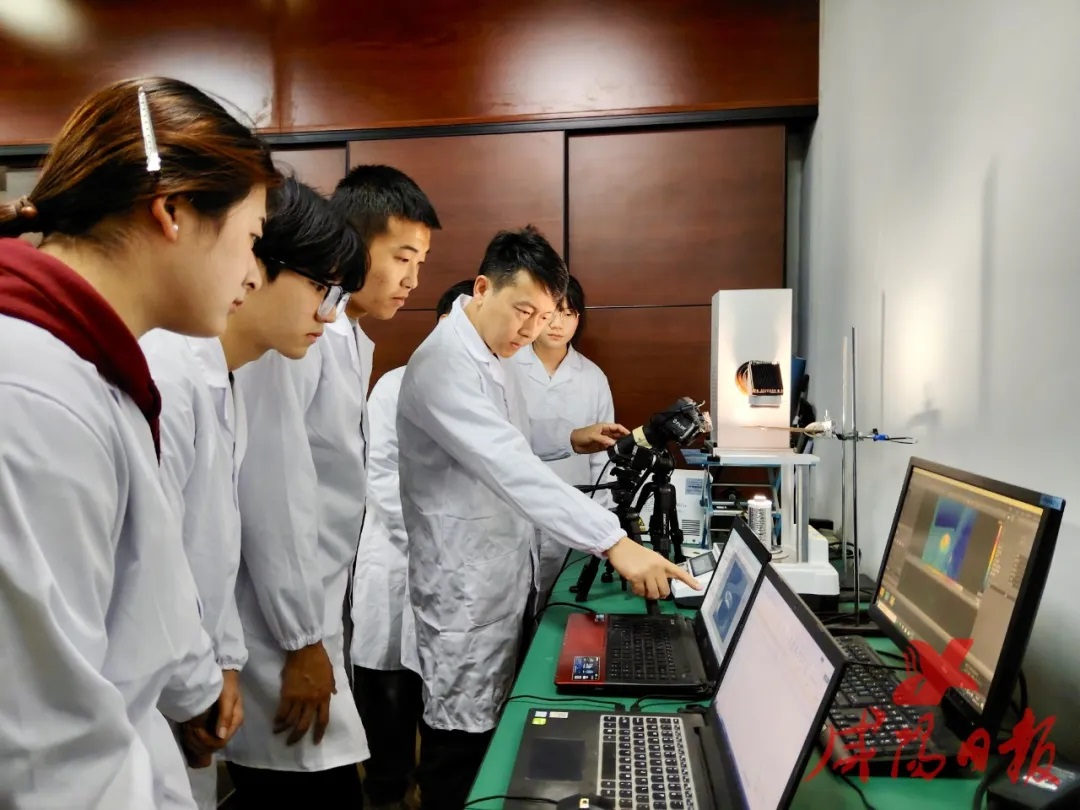 图4 陕西工业职业技术学院王伟副教授在咸阳市功能薄膜与涂层技术重点实验室做观察海水蒸发实验