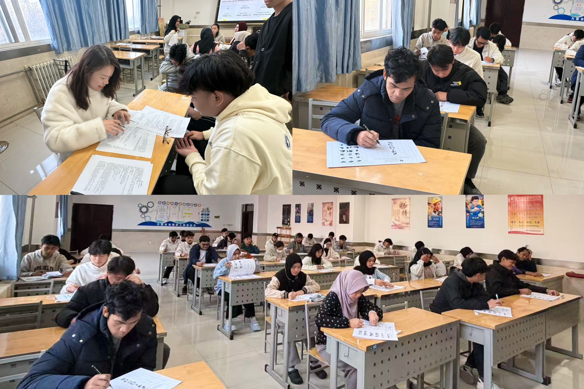 为检验2025/2026学年第一学期前期教学成果、精准掌握留学生汉语学习进度。近期,国际教育学院对2025级宁德时代国际人才工匠班和华友钴业国际人才订单班的留学生进行了期中考试。考试设置多类考核模块,全面检验留学生汉语综合应用能力。
