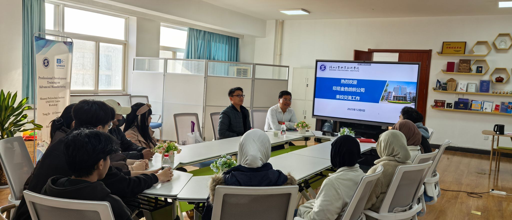 12月8日下午3点,印尼金色纺织公司(PT Golden Tekstil Indonesia,简称“GTI”公司)走进我校国际教育学院,开展企业宣讲与现场招聘活动。公司行政部经理殷维卢和国际教育学院院长秦景俊共同主持,印尼留学生积极参加,现场气氛热烈。