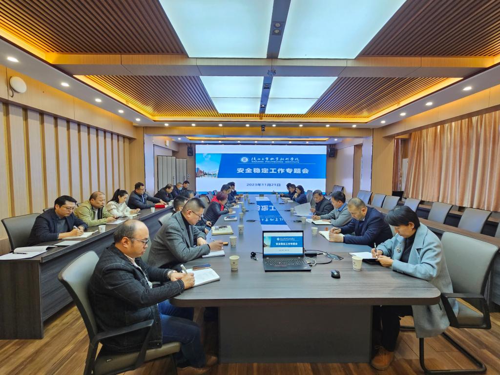 11月21日下午,学校在渭城校区崇文南楼九楼第一会议室召开安全稳定工作专题会议。稳定办、宣传部、学生处、人事处、教务处、国资处、就业指导处、信息化处、保卫处、离退休工作处、后勤保障处、国际教育学院、经开校区综合办及各二级学院等部门参加会议,会议由党委副书记贺天柱主持。