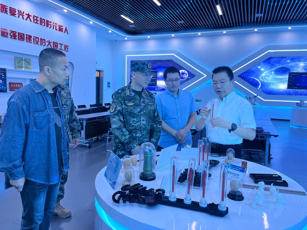 参观过程中党委书记惠朝阳向雒金龙政委介绍了学校在办学特色、人才培养、科学研究、社会服务、校企合作等方面的基本情况。雒金龙政委对我校各项事业取得的成绩给予高度评价,随后简要介绍了武警咸阳支队的基本情况,希望双方能进一步加强合作,互学互鉴,携手共进,共同发展。
