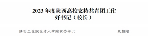 近日,共青团陕西省委、中共陕西省委教育工委印发了《关于2023年度陕西高校共青团工作述职评议结果的通报》,我校荣获“2023年度陕西高校共青团工作优秀单位”,党委书记惠朝阳荣获“2023年度陕西高校支持共青团工作好书记”,材料工程学院团总支书记赵盼盼荣获“2023年度陕西高校共青团工作先进个人”。