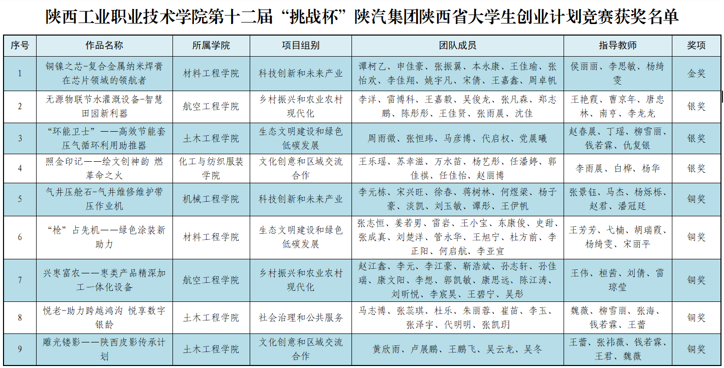 6月7日,由团省委、省委教育工委、省国资委、省科协、省学联、西咸新区管委会主办的第十二届“挑战杯”陕汽集团陕西省大学生创业计划竞赛在西北农林科技大学圆满落幕。我校学子在本届大赛中喜获金奖1项、银奖3项、铜奖5项,学校荣获省赛“优秀组织奖”。