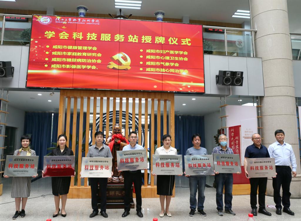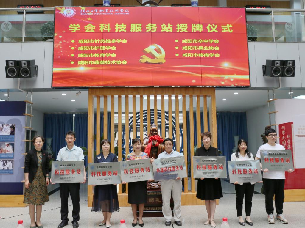 咸阳市科协主席丁震霞介绍本次展览活动安排。启动仪式现场,省科协张俊华副主席、市政府副市长李忠平向15个学会科技服务站授牌。