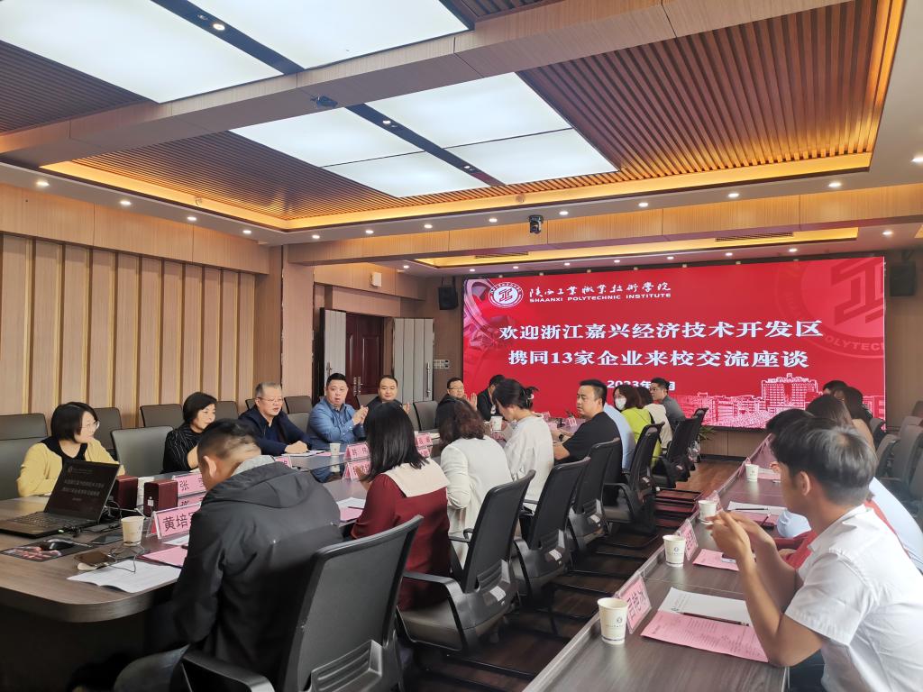 5月23日下午,我校在崇文楼九楼第一会议室与浙江嘉兴经济技术开发区13家企业代表进行交流洽谈。副校长段峻、相关二级学院负责人及就业指导处相关人员参加了会议。