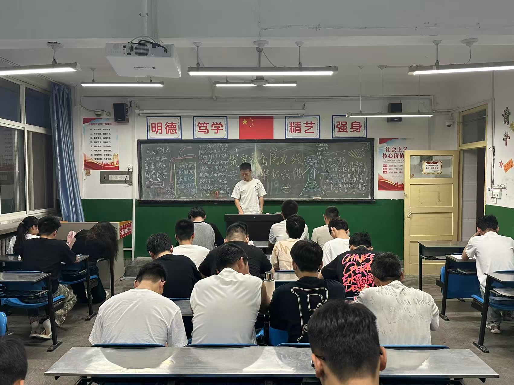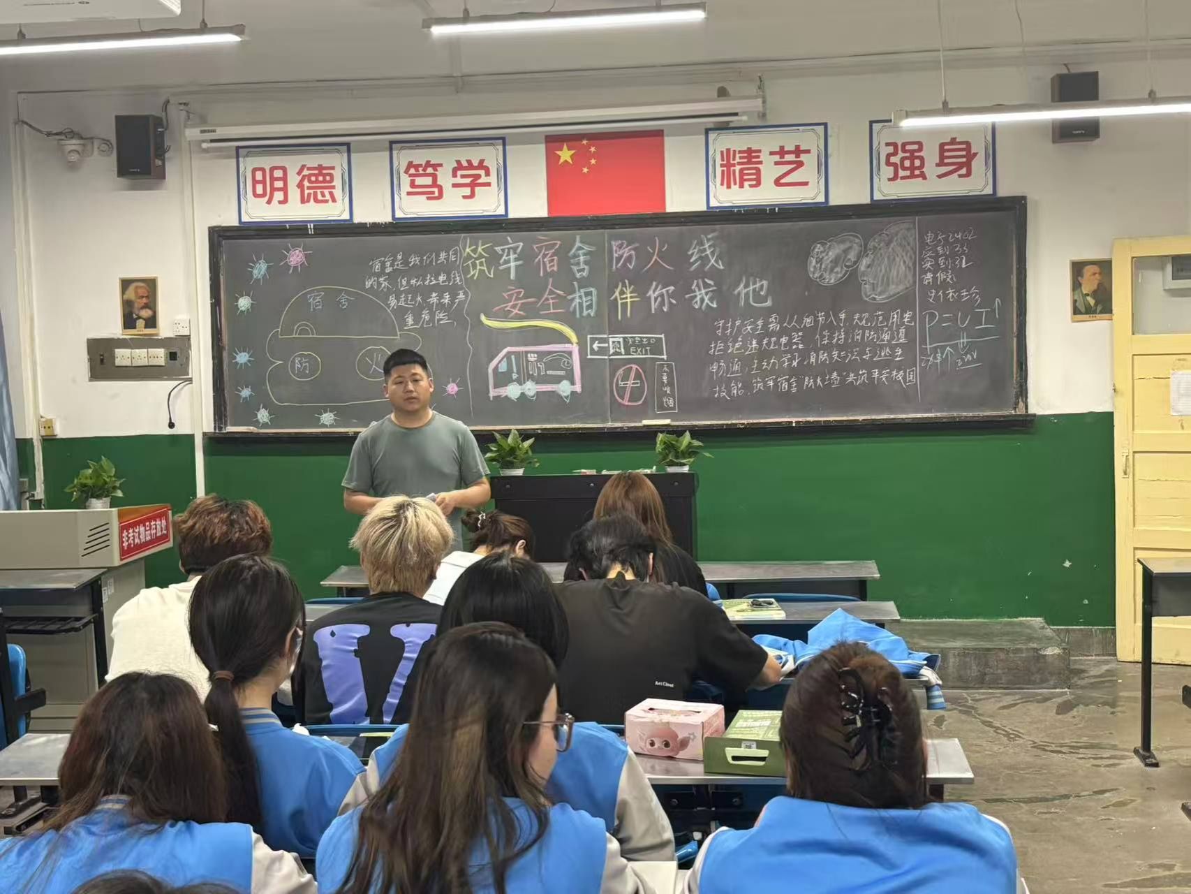 为进一步做好校园安全防火工作,培养学生提高宿舍安全意识,掌握宿舍安全用电防火等常识,提高学生防火意识和自救能力,6月8日晚,电气学院在晚自习教室开展“筑牢宿舍防火线,安全相伴你我他”宿舍防火安全教育主题班会。