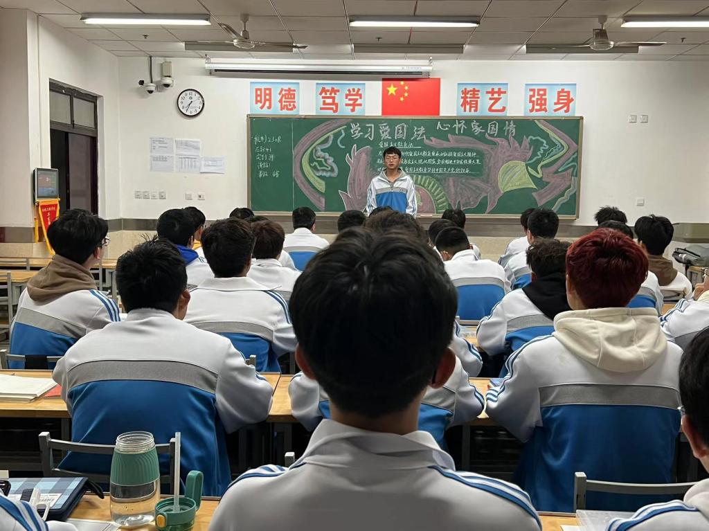 10月29日晚,机械工程学院开展“学习爱国法、心怀家国情”爱国主义教育主题班会。班会上,各班班长领学了将自2024年1月1日起施行的《中华人民共和国爱国主义教育法》,带领同学深入了解爱国主义的科学内涵、主要内容、基本要求,以及公民应该如何弘扬爱国主义精神等。作为新时代的大学生,应当知史爱党、知史爱国,汲取历史的智慧,坚定使命,勇于追梦,努力成为德智体美劳全面发展的社会主义建设者和接班人。最后,同学们就“如何加强爱国主义教育的氛围营造和文化浸润”展开了热烈的讨论,同学们各抒己见,所提观点简洁扼要,气氛十分活跃。