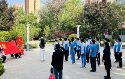 仪式在激昂的《国际歌》声中开始,郭旭华副书记宣读学生工作党委《关于接收预备党员的审批意见》,教师党员庄重地为新党员佩戴党徽,支部宣传委员王凯悦带领全体新党员面向党旗庄严宣誓。