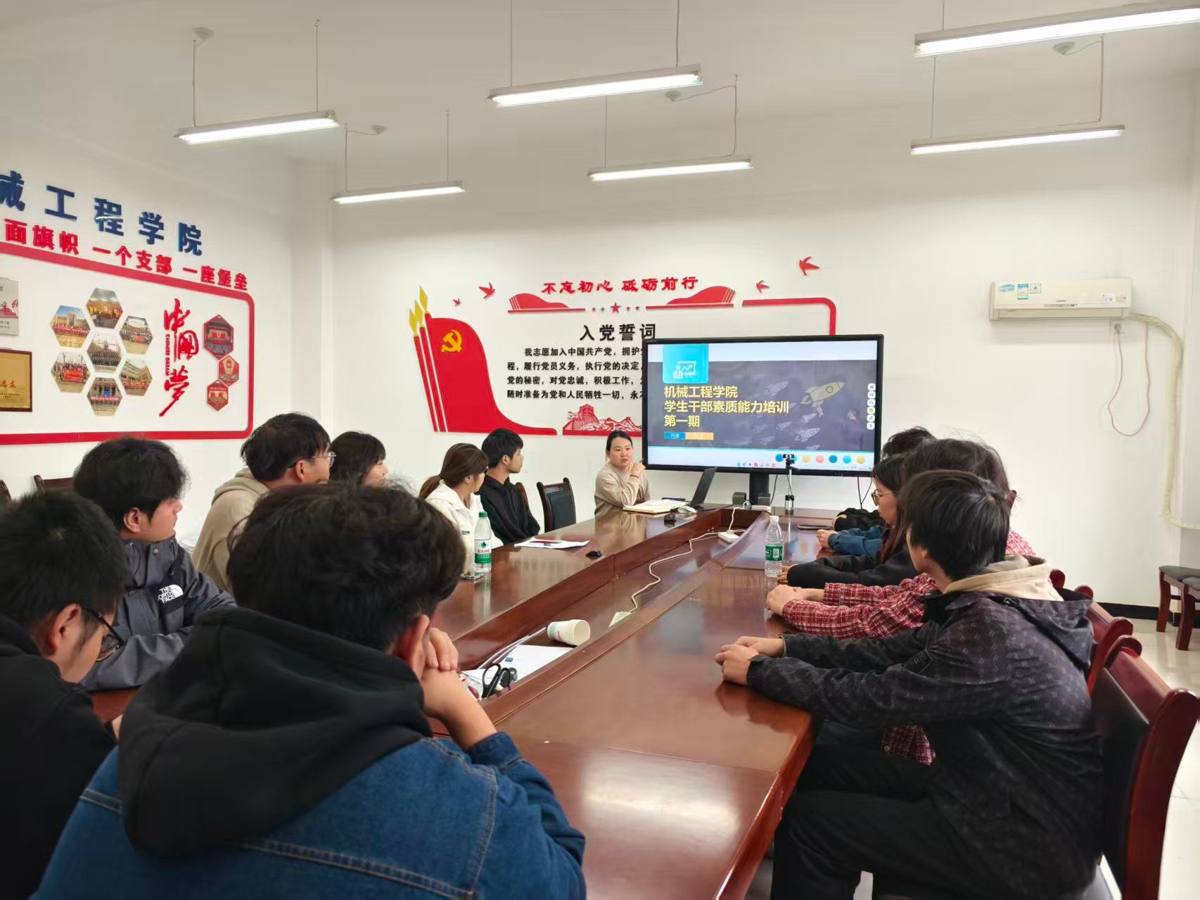 10月21日,机械工程学院举办2025—2026学年首期学生干部素质能力培训。本次培训围绕学生干部核心素养与工作实务展开,内容涵盖角色定位、作用发挥、素质要求等七大模块,助力新一届学生会干部明确职责、提升能力,更好服务师生与学院发展。本次培训由学工办何瑾主讲,全体学生会干部参会。