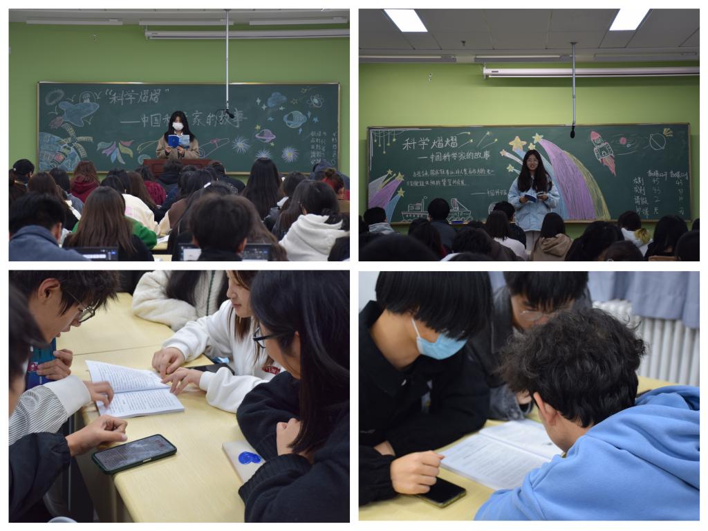 本次团日活动以《科星熠熠:这才是我们应该追的星》学生读本为学习重点,开展了“支部学生干部领读”、“班级集体诵读”、“分组讨论心得体会”等形式多样的读书会活动。同学们在朗读中感受了邓稼先、李强、朱亚光胸怀祖国、服务人民的爱国精神;体会中国航天团队、载人深潜研制团队勇攀高峰、敢为人先的创新精神;感悟李四光、屠呦呦、李保国追求真理、严谨治学的求实精神;敬畏西迁人、郭曾建、樊锦诗淡泊名利、潜心研究的奉献精神;学习卢永根、王忠诚甘为人梯、奖掖后学的育人精神。活动结束后同学们纷纷表示在美好的青春年华里,在今后学习和生活中,要始终以这些“明星”为榜样,传承精神,勇于奋斗。