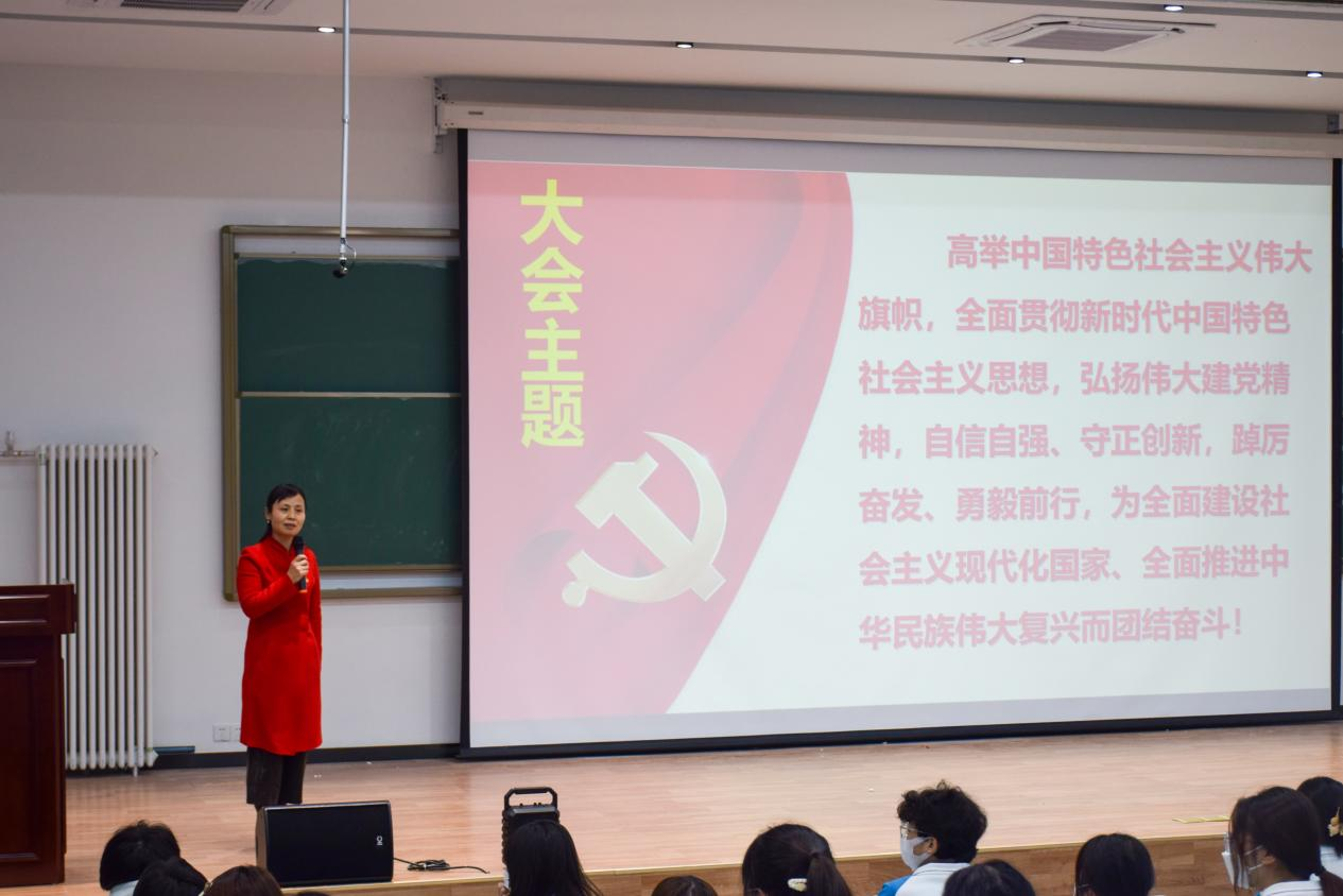 桓美丽老师以视频资料与报告原文解读相结合的形式,从党的二十大报告起草背景、内容和意义、新论述新观点等方面为同学们进行宣讲。结合习近平总书记在二十大报告中对青年人的期许,以及新时代高职院校的新模式新特点,桓老师鼓励大家要在新的学习环境中寻找自己的定位、探索适合自己成长发展的路径、追寻更高的理想,要从学习模式的适应转换、自由时间的管控上真抓实干,不断精进,真正做到脚踏实地、践行为先,敢闯敢为、善作善成,立志做有理想、敢担当、能吃苦、肯奋斗的新时代好青年。