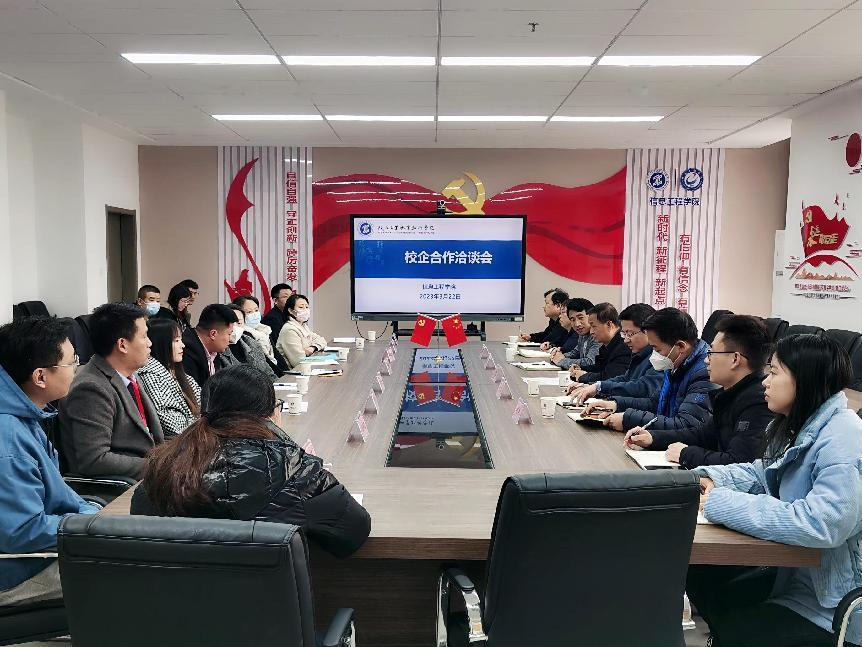 为全面贯彻落实党的二十大关于实施就业优先战略的新部署新要求,进一步深化校企合作、推动产教融合,助力我校毕业生实现更高质量就业,3月22日下午,西安汇龙科技股份有限公司、江苏京东信息技术有限公司、西安纳维通信技术有限公司、中企动力科技股份有限公司等十家企业与信息工程学院在崇理楼C801会议室开展校企合作洽谈会。校党委副书记贺天柱、信息工程学院党总支书记闫军、信息工程学院副院长白国政、信息工程学院党总支副书记郭新玲、信息工程学院学工办主任穆昌以及相关教师参加了洽谈会,会议由信息工程学院党总支书记闫军主持。