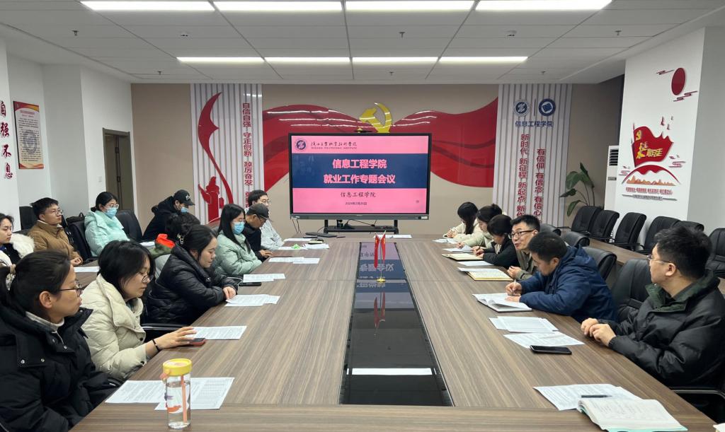 为全面落实学校关于学生就业相关工作要求,全力促进2024届毕业生更高质量就业,2月26日,信息学院于崇理楼C801召开就业工作专题会议,信息学院党总支书记王伟、副书记郭新玲以及全体2024届毕业班辅导员、班主任参加了会议,会议由党总支副书记郭新玲主持。